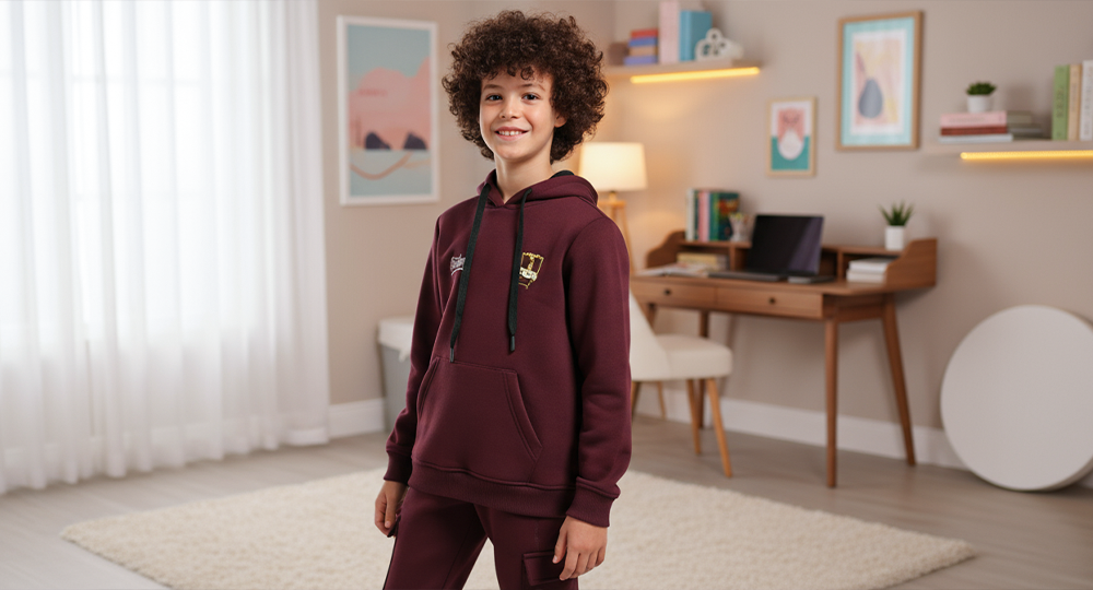 Boys’ Maroon Hoodie Pajama Set with Cartoon Back Print