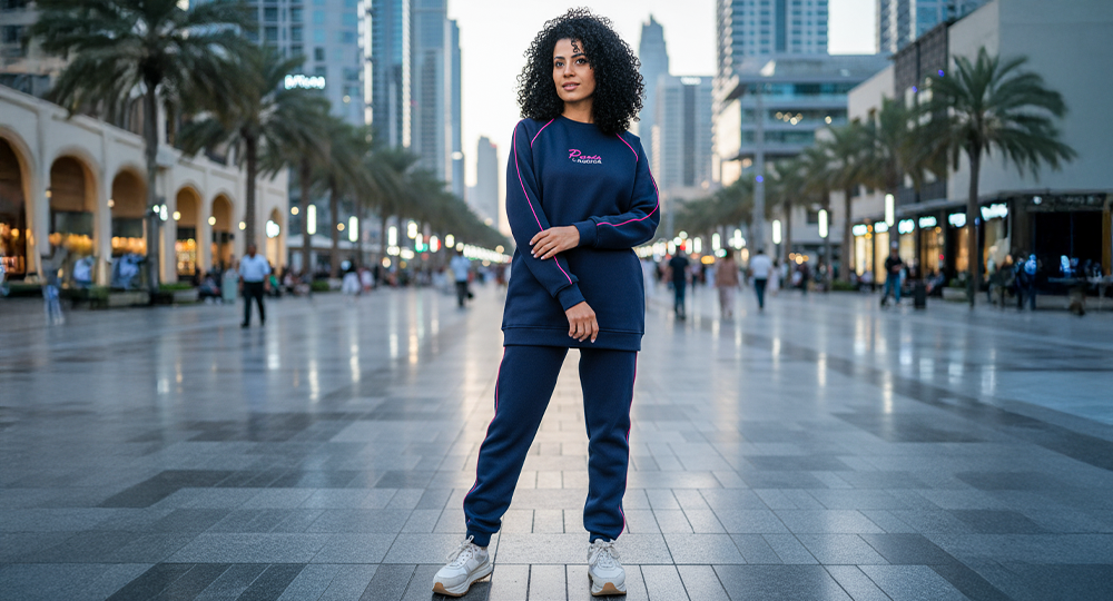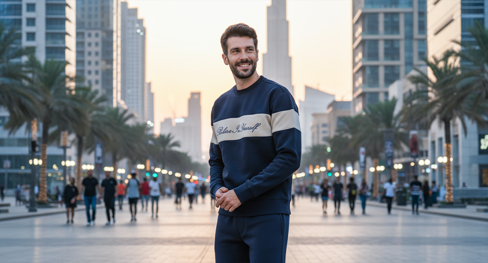 Men’s Casual Hoodie Set – Warm Jogger Tracksuit with Graphic Details - Navy Blue