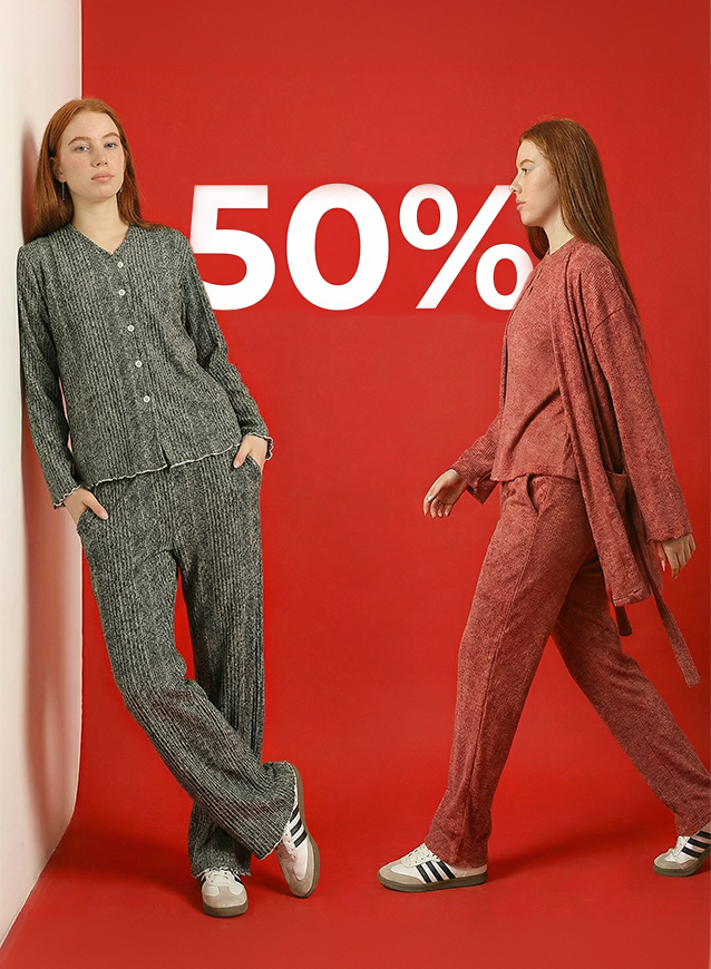 Women’s Jacquard Pajama Set – Long Sleeve Top & Pants with Beige Side Stripe